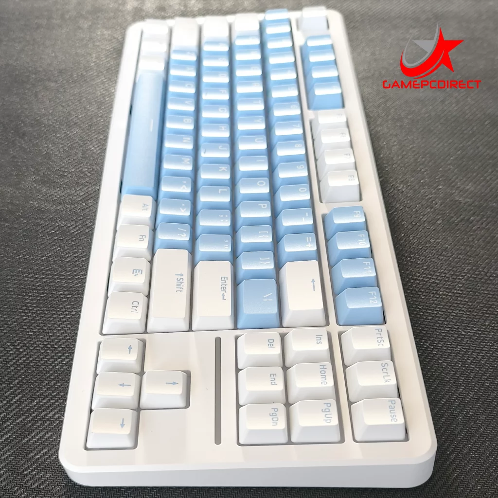 Dit mechanische gaming toetsenbord met 80% lay-out (87 toetsen) is voorzien van een hoogwaardige vijflaagse gasket-structuur. Deze is opgebouwd uit dubbele lagen geluidsabsorberend schuim, een 10x IXPE switch-pad, een 1.2mm FR4 slotted PCB, PET-film en een siliconen bodemmat. Deze geavanceerde constructie vermindert typegeluid en resonantie aanzienlijk, wat zorgt voor een premium type-ervaring in een rustige, gefocuste omgeving.