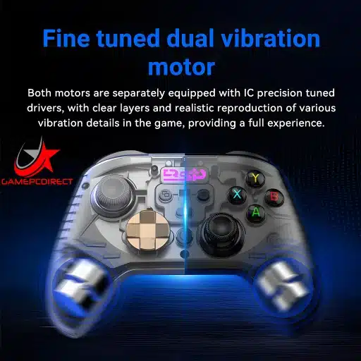 Hall Effect joysticks en triggers voor nul stick drift — gegarandeerd. 1000Hz polling rate, bedraad en 2.4G draadloos, asymmetrische vibration motor en 6-assige gyroscoop. Kleur: Wit.