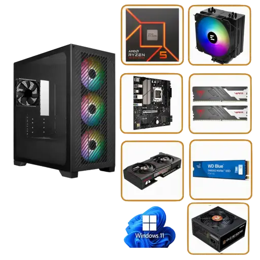 - Efficiënte Processor: De AMD Ryzen 5 7500F (6 Cores) is een moderne AM5-processor die bekend staat om zijn uitstekende gaming-prestaties. Hij is snel genoeg om de videokaart volledig te benutten en koel genoeg voor een stille werking.